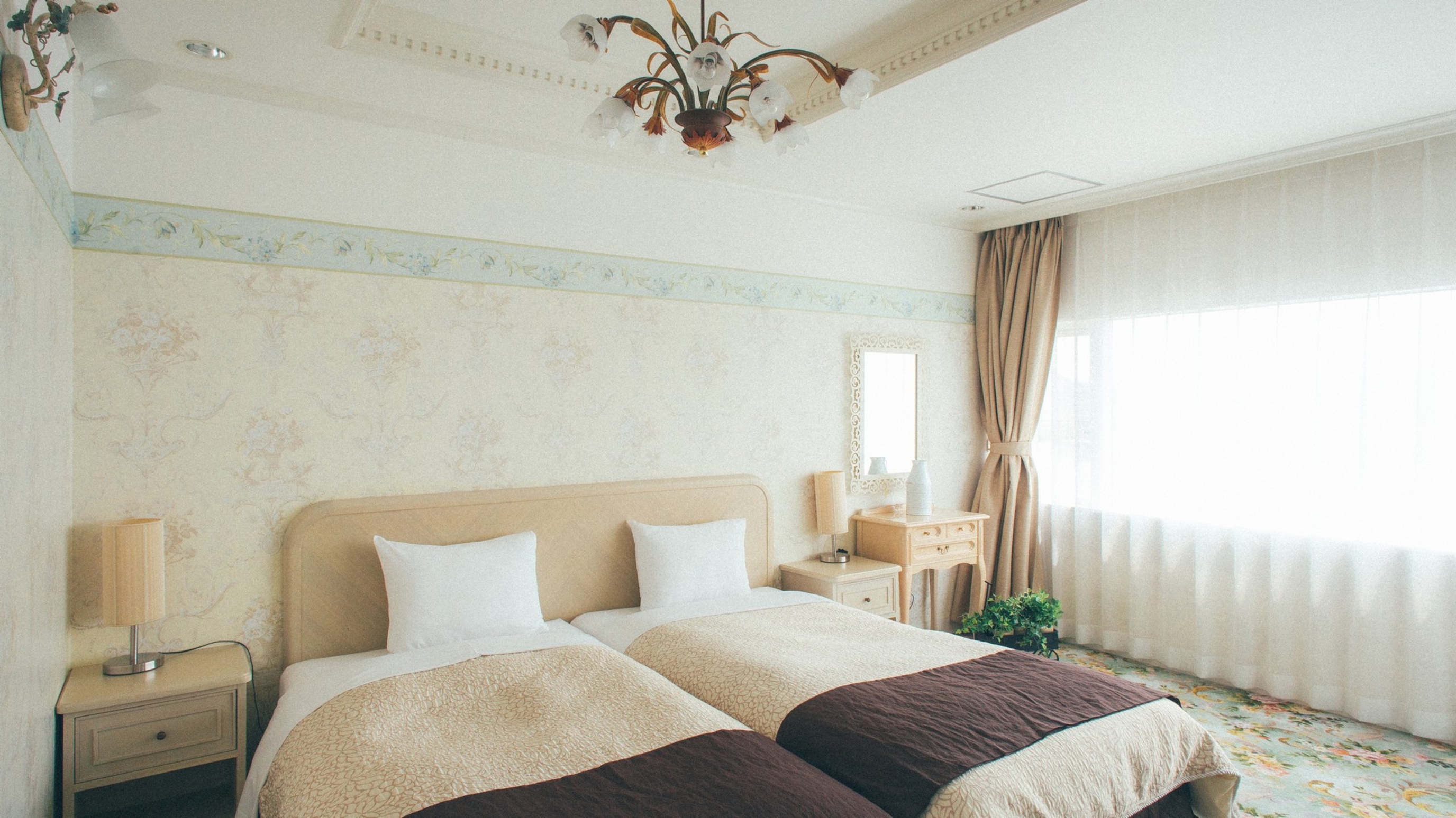 ジュニアスイートルーム(40㎡)は、グリーン溢れるイングリッシュガーデンをイメージした、明るく爽やかなお部屋です。
