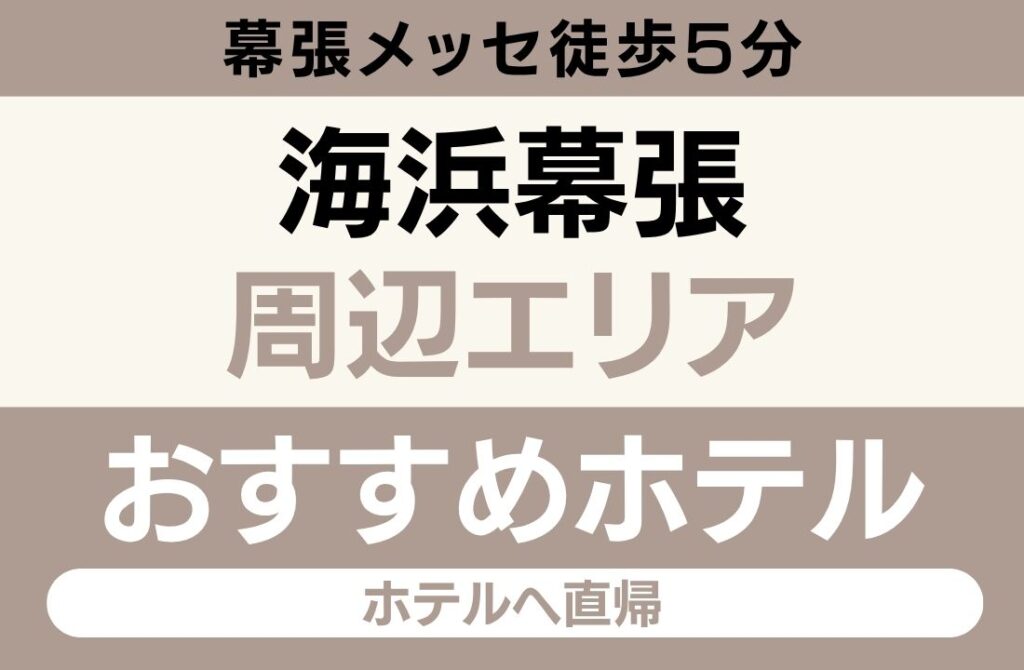 なお、幕張メッセでの大型コンサート・イベント開催時は海浜幕張エリアのホテルが早期満室になりやすいため、参戦が決まったら即座に予約することが最重要ポイントです。満室の場合は千葉エリアまたは錦糸町エリアへの宿泊をご検討ください。