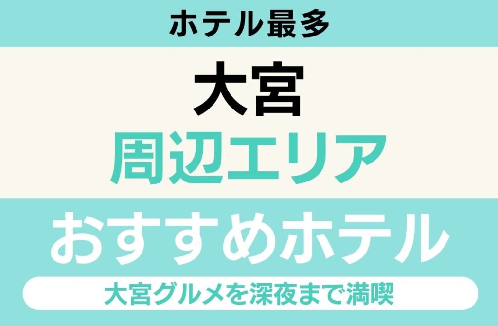 「パレスホテル大宮(大宮駅西口徒歩3分・大宮ソニックシティ内・大宮エリアの代表的シティホテル)」・「カンデオホテルズ大宮(大宮駅徒歩6分・最上階展望露天風呂・朝食ビュッフェ)」・「ダイワロイネットホテル大宮西口(大宮駅西口徒歩6分・高層階の静かな客室)」など高級シティホテルからコスパ型ビジネスホテルまで幅広く揃っています。
