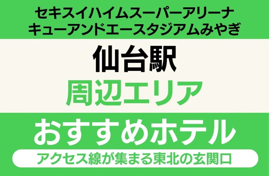 セキスイハイムスーパーアリーナやキューアンドエースタジアムみやぎの遠征において、仙台駅エリアは「東北新幹線直結」「ホテル30軒以上」「仙台グルメ充実」を兼ね備えた、遠征者の定番エリアです。