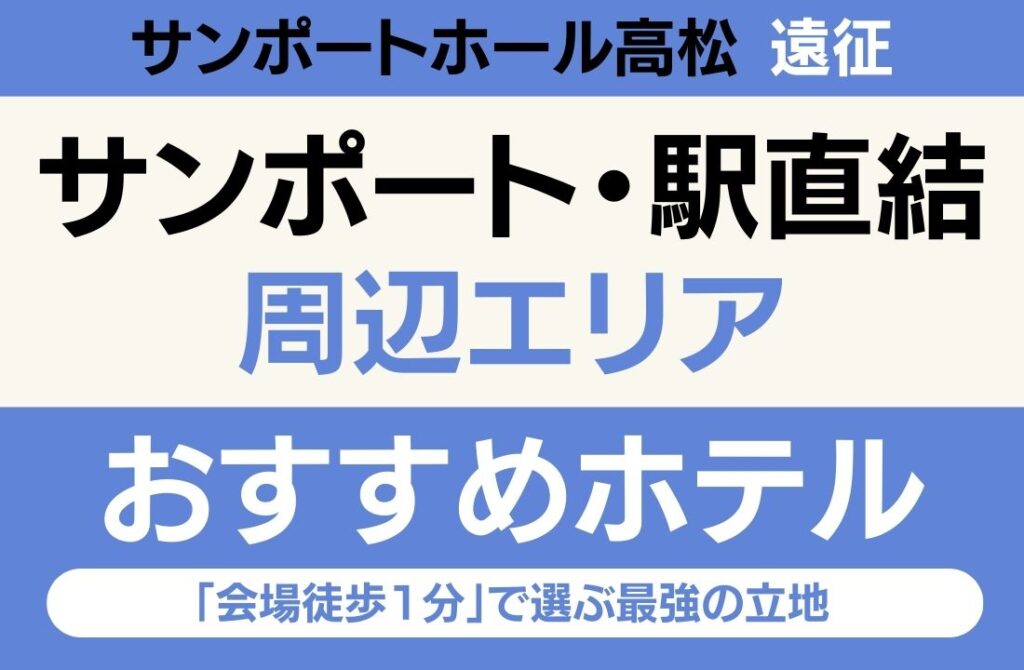 サンポートホール高松への遠征において、サンポート・駅直結エリアは「会場への近さ・瀬戸内海の絶景・展望大浴場」が揃った最強エリアです。