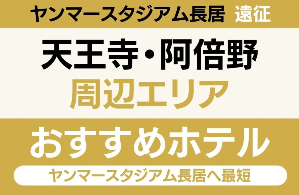 ヤンマースタジアム長居遠征において、天王寺・阿倍野エリアは「御堂筋線直通7分の全エリア最短アクセス」「日本一の高さ・大阪マリオット都ホテルの絶景ステイ」「天然温泉付きホテルで疲れを癒す」「串カツ・通天閣など天王寺グルメと観光」を兼ね備えた、会場最近接で大阪を最大限に満喫できるエリアです。